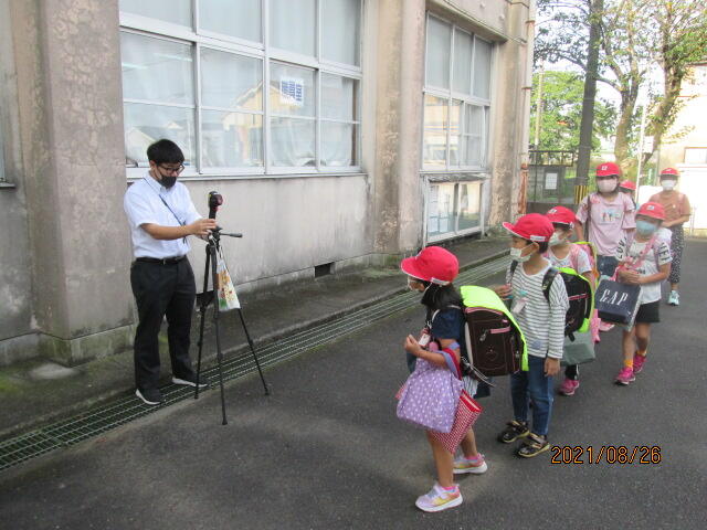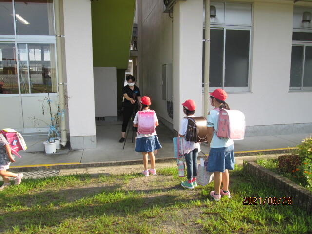 現在、県の緊急事態宣言が発令され、学校での感染対策も「国レベル3」の最も高いものになっております。毎朝、先生方がローテーションを組んで、東門・西門で登校してくる児童全員の体温測定を実施しています。