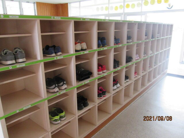 今日の登校後、西門側のくつ箱を見てみると、どのクラスもきれいにくつのかかとがそろっていました。これが毎日続いて、当たり前になっているといいですね。