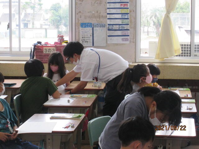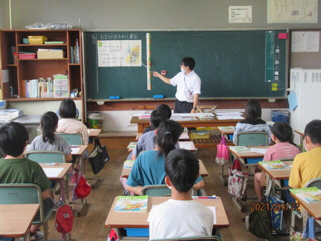 実習生の緊張が伝わったのか、他の先生達が教室にいたからなのか、4年1組の子ども達も緊張しているようでした。授業では一生懸命発表したり、考えたりする姿が見られました。今週末までの実習ですが、多くのことを上小で学んで大学に帰ってほしいですね。