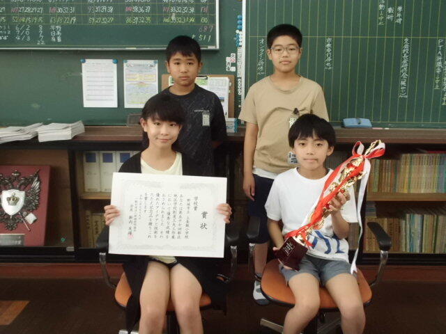 9月19日に都北地区の学校創意工夫工作展の表彰式がありました。各学校から夏休みの作品の一つとして紹介し、応募したものです。その中で下の写真の4名が特選及び特別賞を受賞し、上長飯小学校も学校賞をいただきました。受賞者の学年と名前を紹介します。