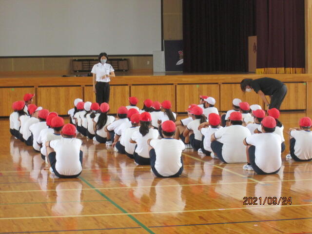 現在、都城・三股圏域は、感染警戒区域(オレンジ圏域)に指定されており、「国レベル2」の感染レベルであるため、大人数が集うような集会は控えています。本日は全校朝会がありましたが、放送での実施となりました。