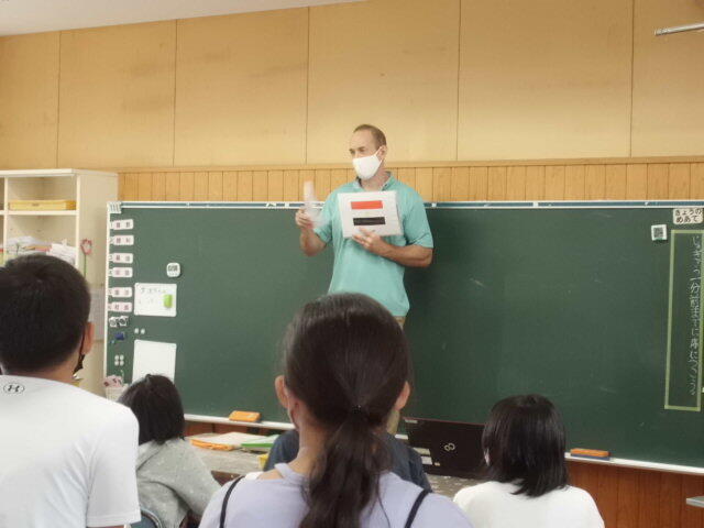 4年生の外国語活動はゲームや会話をとおして英語の響きに慣れ親しむことをねらいとしています。今回は国旗を使ったゲームを導入で行っていました。みんな意欲的にゲームに参加し、とても楽しそうに盛り上がっていました。