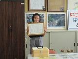 この度、都城木青会児童木工工作コンクールの会長賞を、5年浅岡さんが受賞しました。賞状と副賞が学校に届いたので、早速、校長室で授賞式を行いました。