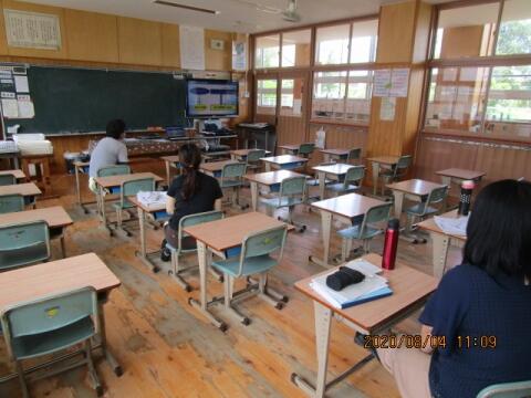 次は、各教室に分かれて、オンライン研修。県教委のビデオ視聴です。