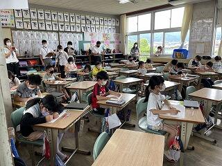 本日は、都城市教育委員会が計画・実施する学校支援訪問がありました。この訪問の目的は、学校の教育水準の維持向上です。市教育委員会から4名(教育委員、副課長、指導主事2名)、南部教育事務所から2名(主幹、指導主事)が来校され、一日の学校活動を参観され、専門的な立場から指導・助言をいただきました。