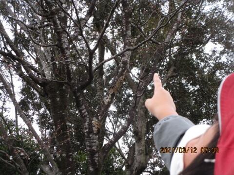 あれは、早咲きの桜です。八重桜だと思います。きれいですね。桜は300種くらいあるから、名前を探すの大変なのですよ。