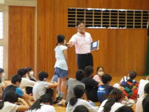 時には、子どもさんにマイクを差し向け、授業を盛り上げます。