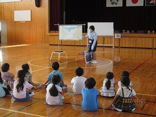 7日(火)に交通安全教室が開催されました。当初は1・2年生での実施予定でしたが、新型コロナウイルス感染防止の観点から、屋内施設での密を回避するために、1年生のみ1クラスずつの実施としました。