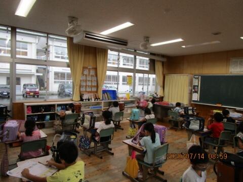 校長が廊下を歩いているとむしむししますが、教室に入ると、湿度の低い、さわやかな風が流れてきます。