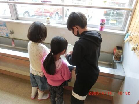教頭先生、お見送り。明日も、元気でおいでね。給食、おいしいよ!