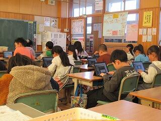 授業の中でタブレット端末を使うことが多くなりました。そのタブレット端末には、子どもたちの学習に役立つアプリが入っています。先生は子どもたちにアプリを使わせる前に、そのアプリでどのようなことができるのか基本的な操作を確認しています。実際、子どもたちがアプリを使って学習を進めていると、時々、便利な機能を見つけることがあるそうです。例えば、「スピーカーノート」という機能を使えば、スライド発表の時に言う文を入れておけるようになることです。それを個人レベルにしておくのはもったいないということから、3年生では子どもたちが学習を進めながら見つけた便利な機能を学級の壁に掲示して、みんなが使えるようにしています。情報共有です。子どもたちは壊れることを恐れず、「とりあえず、やってみる。」というチャレンジをします。その結果、子どもたちは便利な機能を発見するのでしょう。
