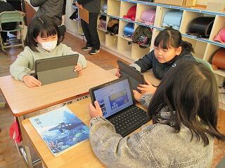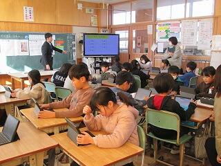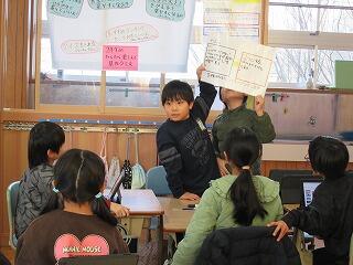 今、3年生の総合的な学習の時間では、「いいところいっぱい ぼくらの自慢 上長飯」をテーマに学習を進めています。いわゆる、ふるさと学習です。今日の授業は、子ども一人一人が「上長飯PR大使」になれるように、これまで調べてきたことをまとめたスライドを示して、友だちの意見を取り入れながら、分かりやすさや見やすさという視点からスライドをよりよいものに改善しようとするものでした。そして、スライドの修正等が終わったら、2年生に調べたことをスライドを使って発表するそうです。2年生は生活科で「まちたんけん」をしているので、3年生の発表を興味をもって聞いてくれるのではないかと思います。すべての学習が終わった時に、3年生が一人でも多く、ふるさと上長飯に対する愛着と誇りをもってくれることを願っています。