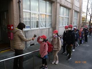 そんな中、学校でも「国レベル3」相当の感染防止対策を継続しているところです。校門での検温もその取組の一つです。寒い中ではありますが、先生が校舎外で平熱確認を行い、教室に上げています。教育活動も制限を続けている状況です。一日も早い終息を願うばかりです。