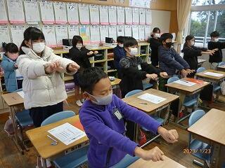 今日から一週間、グーパー運動(握力)、ジョギング・散歩(持久力)、ストレッチ(柔軟性)などの様々な運動に取り組んでいきます。「けんこう週間カード」を持ちかえりますので、御家庭の皆様の御協力をよろしくお願いします。