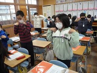 島元先生からは、生徒指導面について学年のまとめをしていくこと、チャイム黙想を全校で徹底することのお話がありました。桑畑先生からは、保健面について「あ・け・ま・し・て・お・め・で・と・う」を頭文字に、健康に過ごすための10のポイントを教えてくださいました。