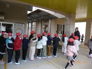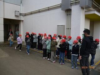 現在のコロナ禍の状況で、できるだけ他の学年との接触を少なくする目的で、全体での避難ではなく、各学年ごとに避難経路を確認する形で実施しました。