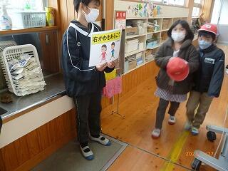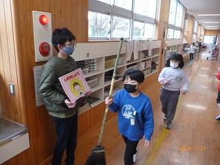 生活委員会の5,6年生が「ろうか歩行見守り隊」として頑張っています。