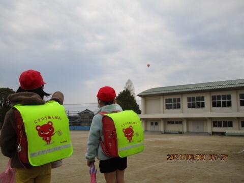 おー、気球か、元気出たね、みんなの応援のために飛んでくれているんでしょうね。