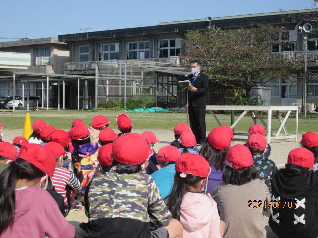 そして始業式となり、二人の子どもが児童代表として新しい学年の抱負や目標を話してくれました。校長先生からは、笑顔でいっぱいの学校にするために「ありがとう」「ごめんね」「大丈夫」の三つの言葉をみんなでたくさん使いましょうというお話がありました。