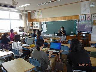 先日の放課後、AI型教材「Qubena(キュビナ)」についての研修を行い、課題作成の仕方について確認、協議をしました。学年に応じた課題内容、学習時間の設定を行い、パソコンを持ち帰っての家庭学習を充実させていきます。