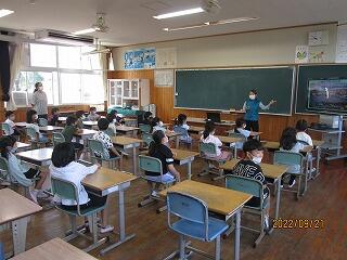 市の交通安全協会の皆様にご協力いただき、分かりやすく教えてもらいました。命に関わることなので、2年生も真剣に聞いてましたよ。今日の学びを今後、実践できるようになるといいですね。