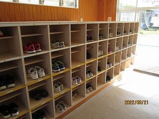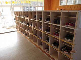 児童玄関の靴箱の様子です。上小の子ども達は、いつでも靴箱がきれいです。