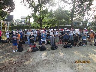 新型コロナウイルスの感染状況が減少傾向となり、何とか実施することができました。感染防止対策も十分に行います。子どもたちは笑顔が見られ、元気にバスで青島に向かいました。