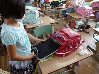 今後は、学年の学習の進捗状況に併せて1人1台端末の持ち帰りを学年で行っていく予定です。子ども達も2回目の持ち帰りなので、慣れている様子でした。学校の授業でも毎日活用しているので、接続がうまくできれば、家庭学習での活用も今後進んでいくと思います。月曜日には、持ち帰った端末等は忘れないように学校に持たせるようにお願いします。