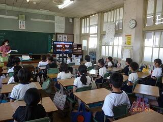 市の交通安全協会の皆様にご協力いただき、分かりやすく教えてもらいました。命に関わることなので、2年生も真剣に聞いてましたよ。今日の学びを今後、実践できるようになるといいですね。