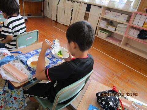1年生 上手に給食食べています