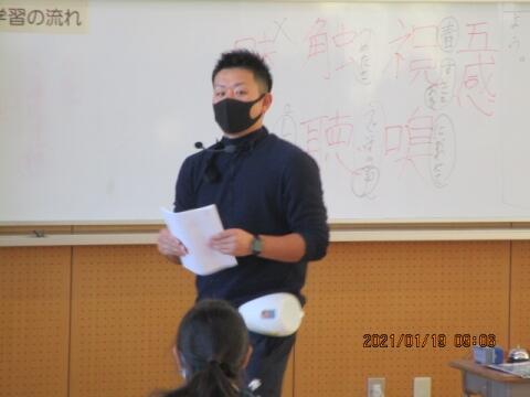 広々とした「多目的室」で、密を避けて、座学授業です。みんな集中してくれている!