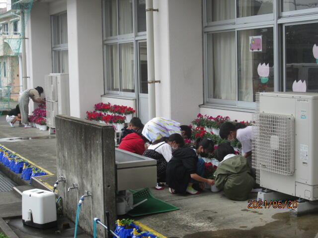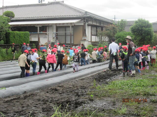 早速、給食終了後に準備をして畑に向かいました。肥後様が土地の提供や苗の準備をしていいただき、2年生が自分たちの手で苗を植えることができました。肥後様の御協力に感謝申し上げます。明日からも雨の予報なので、今日苗植えがてきたのは本当に良かったです。これから観察をしながら、お世話をしてたくさんのさつまいもを収穫できるといいですね。