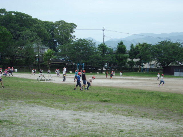 昨日は、久しぶりの梅雨の合間でした。下の写真は、その時の昼休みの様子です。上小にしては運動場で遊んでいる子どもが少なく感じませんか。実は、現在、都城市内の小・中学校では、「国レベル3」のとても高い感染対策を講じるよう指示が教育委員会から出されています。