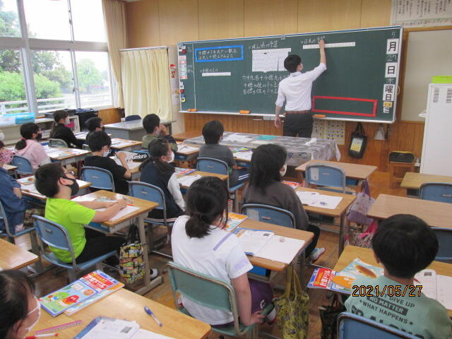 実習生の緊張が伝わったのか、他の先生達が教室にいたからなのか、4年1組の子ども達も緊張しているようでした。授業では一生懸命発表したり、考えたりする姿が見られました。今週末までの実習ですが、多くのことを上小で学んで大学に帰ってほしいですね。