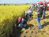 22日(金)に5年生が稲刈り体験を行いました。JA青年部の方や地域の方にもお手伝いいただき、鎌による稲刈りをしました。自分達で田植えの時もやっているので、みんな思い入れもあったのでしょう。一生懸命に頑張っていました。