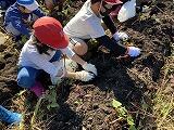 本当なら25日(月)に予定していましたが、雨天のため、延期しての当日をむかえました。天気にも恵まれ、春先に苗を自分たちで植えたものなので、子ども達も収穫の喜びを味わいながら、楽しく芋ほりを行いました。大きさや形を比べたりしながら、満面の笑顔でした。畑を提供していただき、これまでいろいろと支援いただいた肥後様にこの場をかりてお礼を申し上げます。