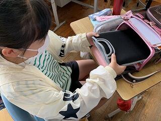 本日、1人1台端末の持ち帰りを一斉に行います。