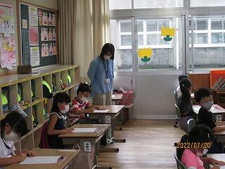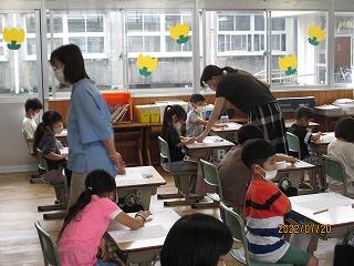終業式もこれまで通り、感染拡大防止の観点から校長室と各教室を結んでのリモート形式で行いました。2、3、5年生の代表による作文発表があり、それぞれ1学期を振り返るとともに2学期の目標について堂々と発表をしてくれました。校長先生からは、1学期の良かった点と今後の課題についてお話がありました。また、自分の命を自分で守るということもお話されました。生徒指導の島元先生からは、夏休みのきまりについてお話がありました。保健室の桑畑先生からは、夏休み中も新型コロナウィルス感染や熱中症などに気を付けて健康に過ごしてほしいというお話がありました。