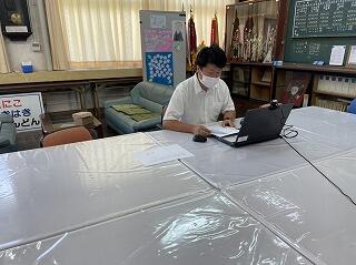 都城市内の新型コロナの感染者数も過去最高を記録し、なかなか職員室に集まっての会議や研修ができない状態が続いていますが、少人数で換気の十分な部屋をリモートで結んで、会議や研修をするように感染防止対策と両立させながら進めています。