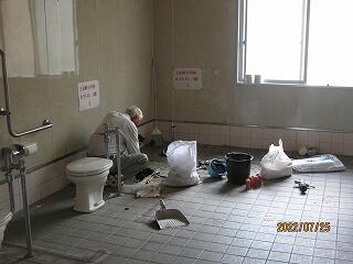 作業してくたさる方も、クーラーの無い場所で、あせを流しながら作業に取り組んでいただいています。2学期にはきれいになったトイレを使用できるはずです。