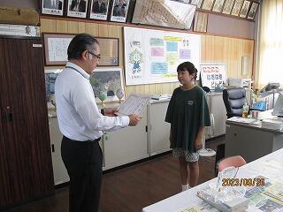 9月26日(火)の昼休み時間に、上長飯少女バレーの表彰を校長室で行いました。