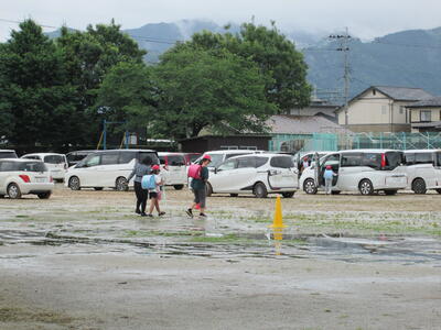 そこで、実際に引き渡し訓練を行うことで、保護者等への子どもの受け渡しがスムーズに、そして何より確実にできるかどうかを検証したところです。今回の訓練は、雨の中の訓練になりましたが、保護者の皆様の御理解と御協力により特に大きな問題もなく終わりました。