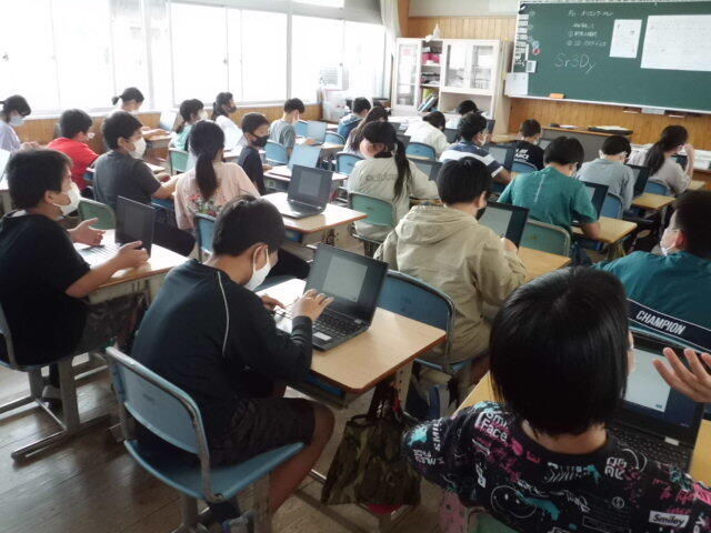 今週は5年生が一人一台のICT端末、自分のChromebook(クロムブック)を使用している教室をのぞいてみました。