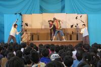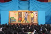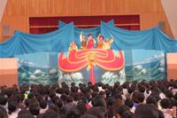午前の部は1・2・3年生、午後の部は4・5・6年生が鑑賞しました。75分という長い劇でしたが、子どもたちは物語の展開、舞台の演出、そして役者さんの迫力ある演技に引き込まれ、食い入るように観ていました。
