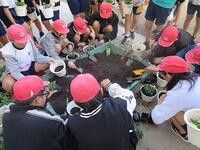 6年生は「一人一鉢運動」として、パンジーの苗の植え替えを行っていました。これから毎日、水やりなどのお世話をしながら育てていきます。