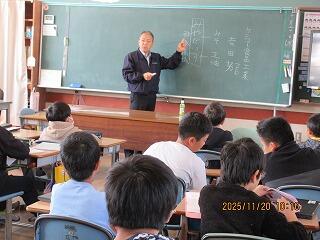 11月20日(木)に、吉田醸造ケンコー食品代表の吉田様、都城産在来種みやだいず普及員・宮崎県キャリア教育コーディネーターの井上様、前田豆腐代表の前田様、宮崎大学地域資源創成学部准教授の橋口様の4名を講師に招いての学習を行いました。