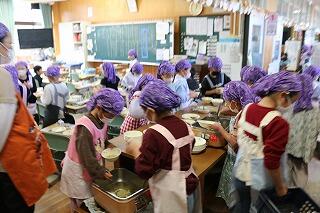 2学期から給食当番を自分たちだけで行うようになった1年生ですが、その準備の様子に目を見張りました。
