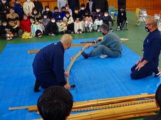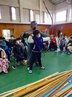 1/27(金)、4年生が都城大弓(だいきゅう)体験をしました。社会で学習している都城の伝統工芸である大弓の、なんと本物の弓師さん達が3名来てくださり、弓の歴史や作り方について実物を用いて説明してくださいました。また、実際に作業する様子を見せてくださったり、子どもたちに本物の矢や弓、使用する材料や道具などを触らせてくださったりと、子どもたちにとってすばらしい経験となる機会でした。弓師の皆様、そして開催にあたってお世話していただいた都城市役所の皆様、本当にありがとうございました!