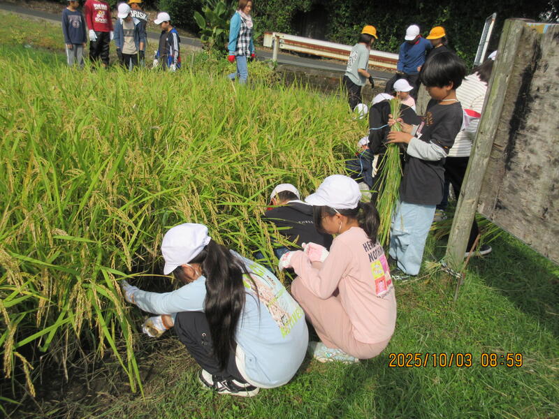 5年生は、ふるさとの会の皆さんと一緒に、稲刈りを行いました。