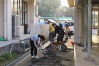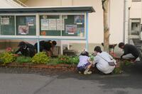 6時半開始という早朝にも関わらず、多くの保護者や子どもたちが参加し、草取りや側溝の泥さらい、木の剪定などをしてくださいました。おかげさまで、あっという間に、学校のあちこちがきれいになりました。ありがとうございました。